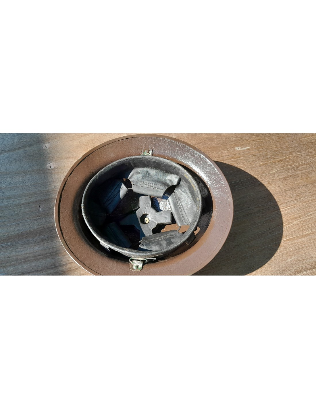 Intérieur avec sa coiffe à cinq dents, bons caoutchoucs amortisseurs et tampon supérieur, jugulaire manquante mais pontets d'accroche bien présents.