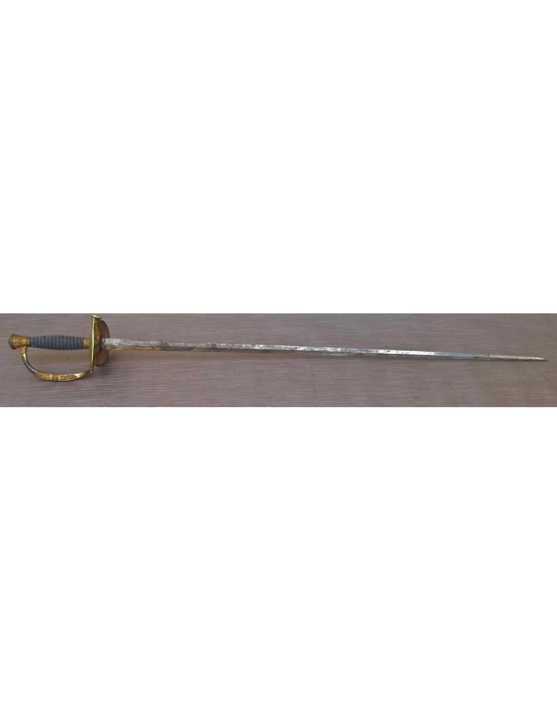 La lame droite de 83 cm est de section losangique avec le talon portant le poinçon du fourbisseur.